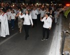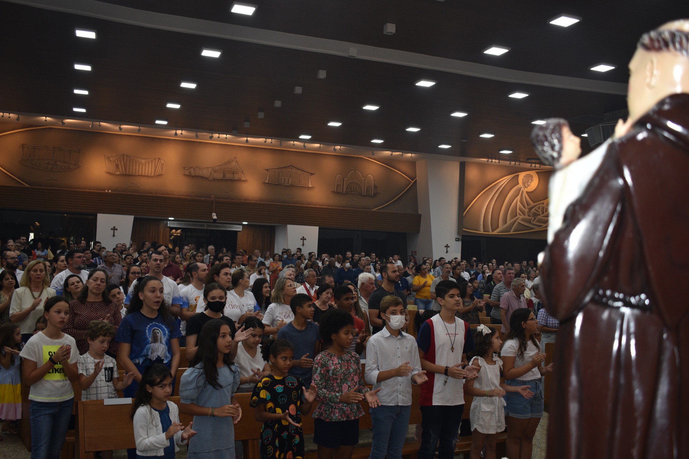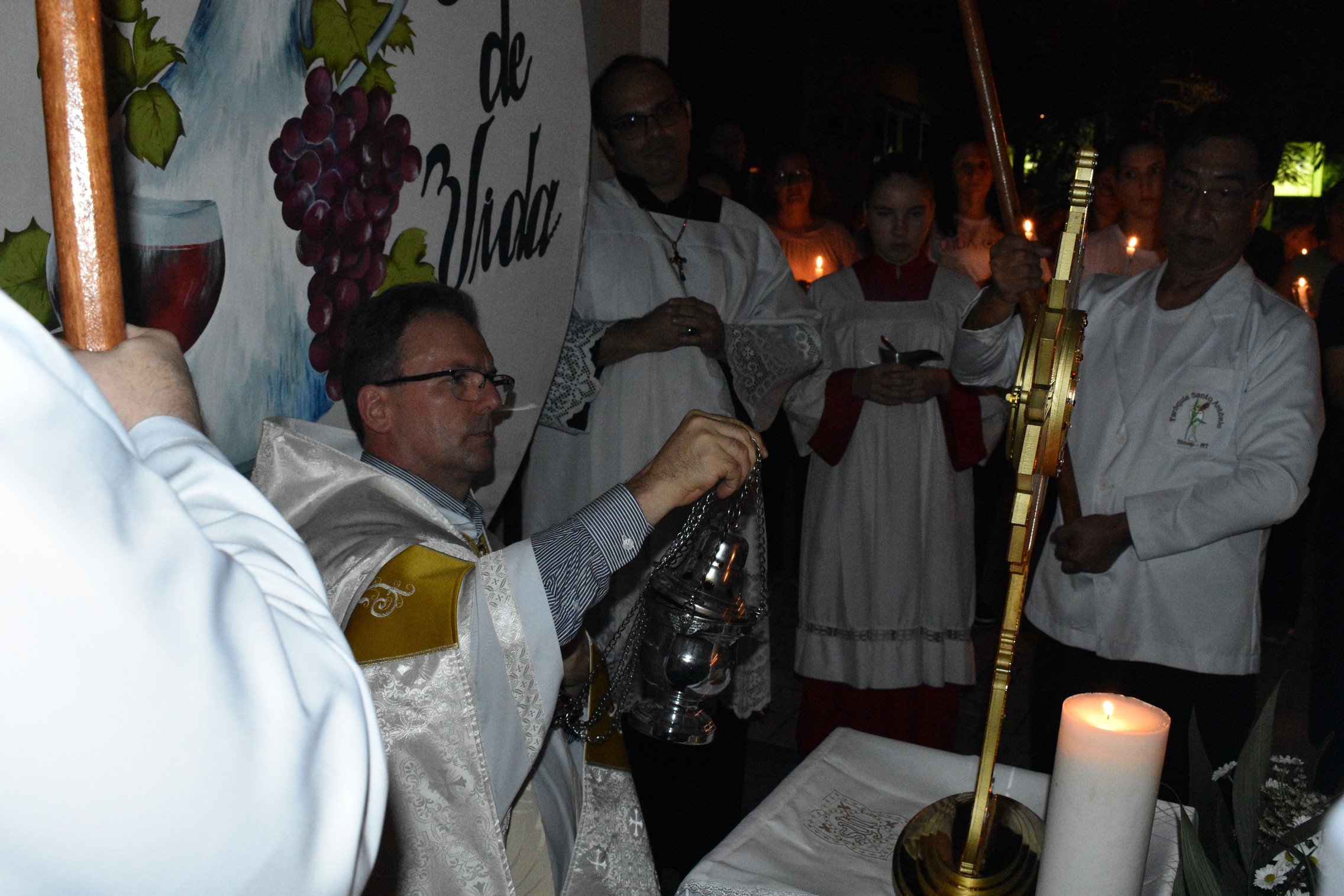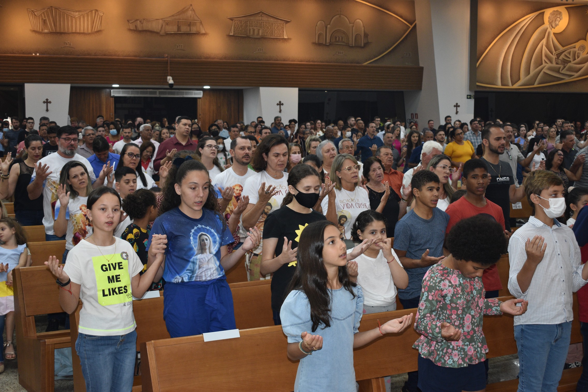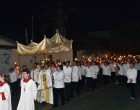 Uma multidão seguia Jesus com cantos, orações próprias e reflexões concernentes a Eucaristia. O percurso da procissão foi pontilhado por cinco paradas, com temas específicos para reflexão em cada uma delas. Um momento inesquecível para guardar no coração com sentimento de amor e gratidão. O desfecho da procissão aconteceu na Igreja de modo vibrante e feliz.