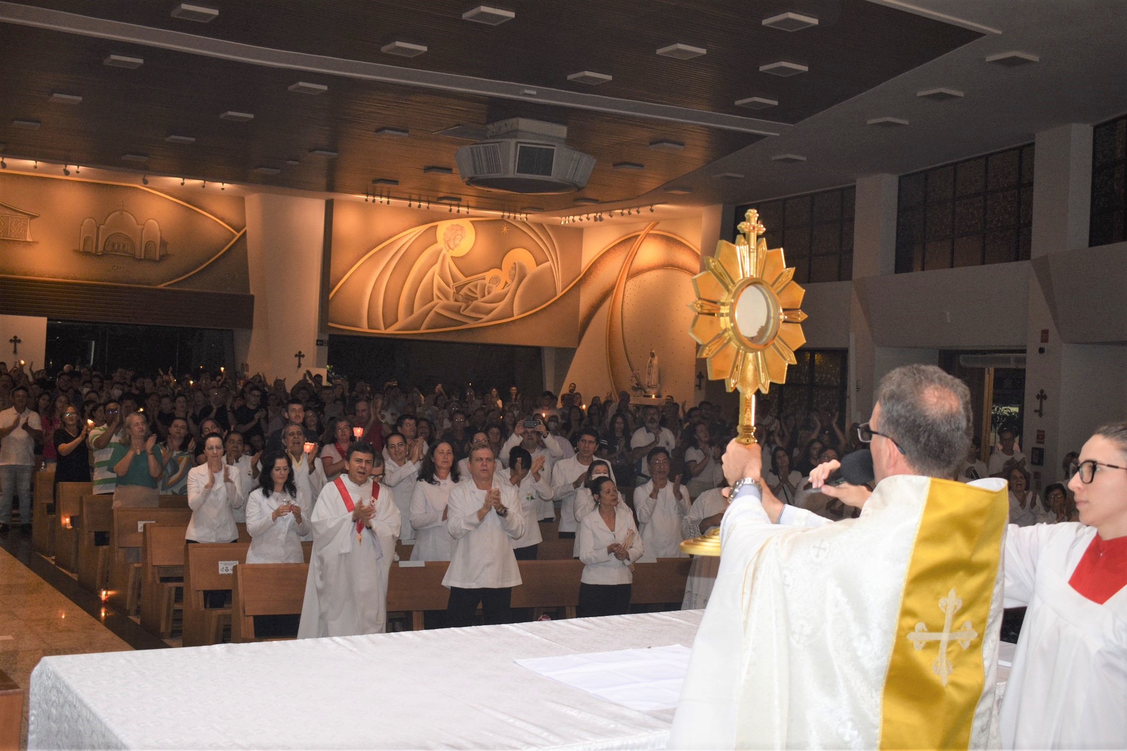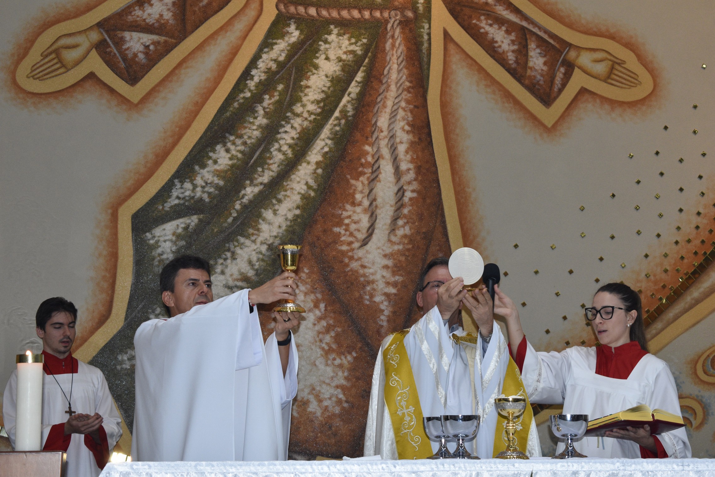 “A Eucaristia faz a Igreja e a Igreja faz a Eucaristia”, com essa frase Pe. Roberto J. Gottardo,SJ iniciou a Solenidade do Corpo e Sangue de Jesus Cristo, que foi presidida por ele e concelebrada pelos vigários Paroquiais Pe. Marcelo P. da Costa, SJ e Pe. Ivo H. Muller, SJ, ocorrida ontem (16 de junho) às 18h na Igreja Matriz Santo Antônio em Sinop/MT.