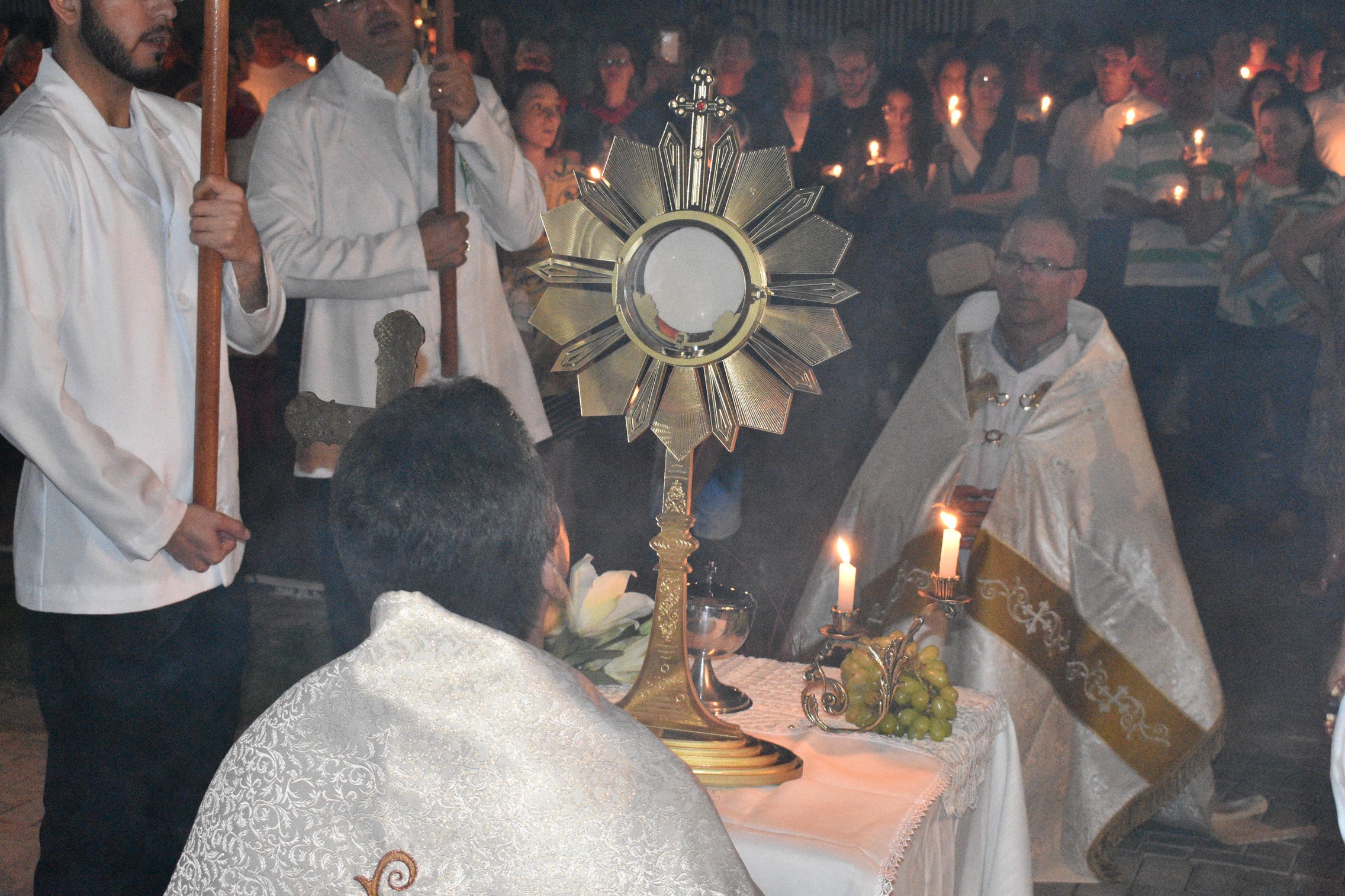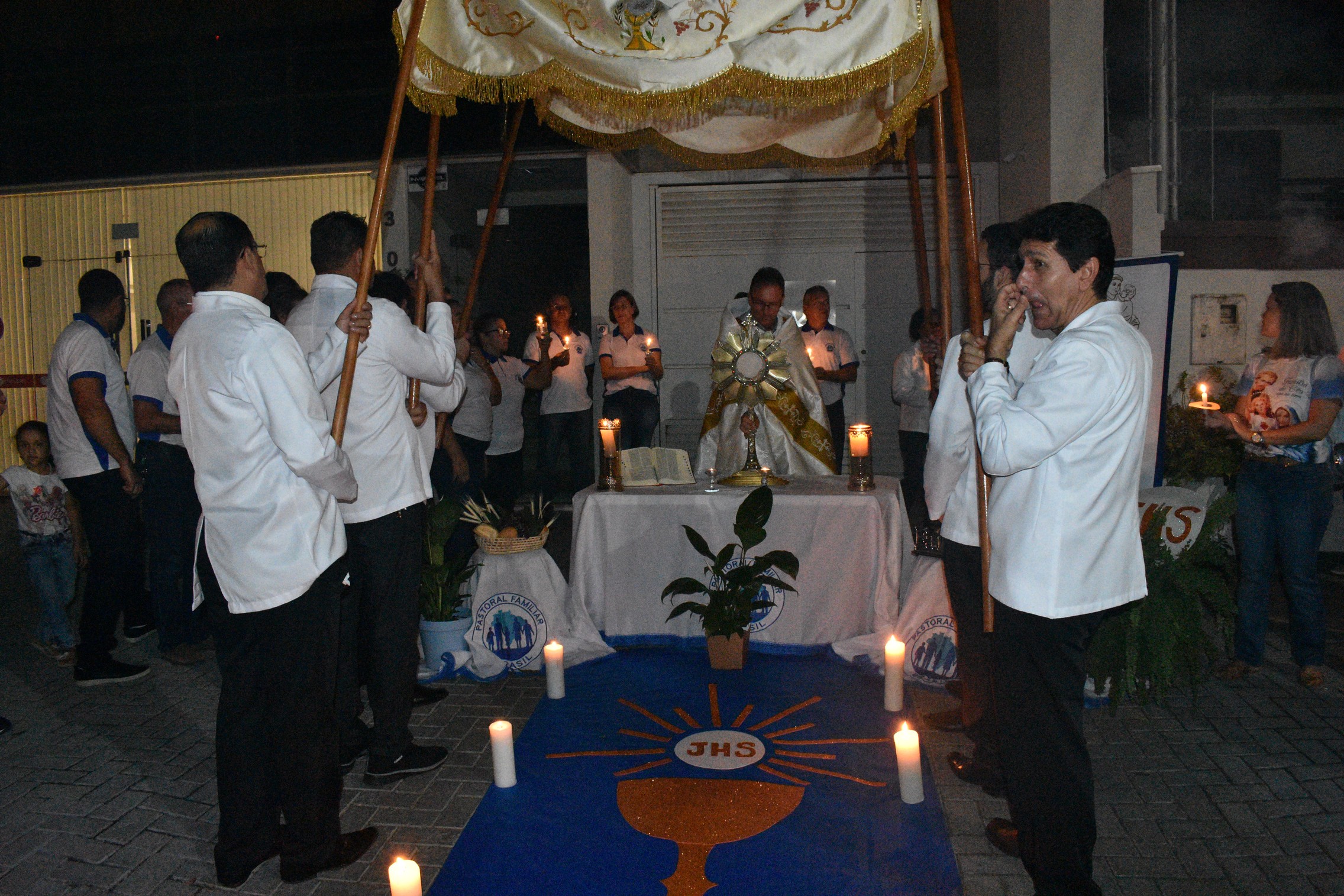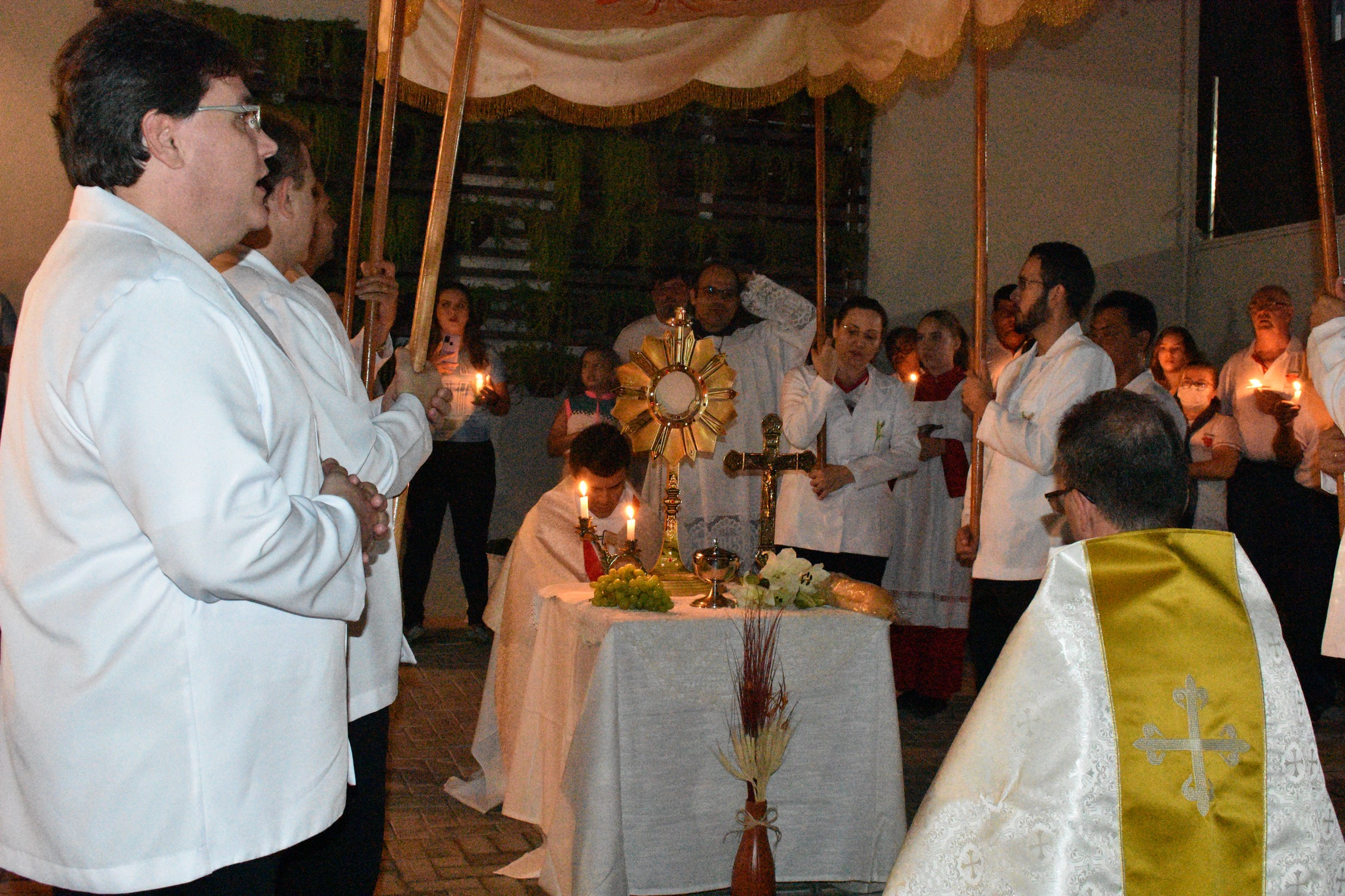 Deus seja louvado. Nossa gratidão e afeto a todas as pessoas que organizaram e participaram o evento, nos proporcionando singular experiência de Igreja. Saímos consolados e com as brasas acesas. Que possamos a cada dia aprender a louvar, a bendizer e a adorá-lo em espírito e verdade com aquela disposição inaciana: “Em tudo amar e servir, para a maior glória de Deus”. Uma multidão seguia Jesus com cantos, orações próprias e reflexões concernentes a Eucaristia. O percurso da procissão foi pontilhado por cinco paradas, com temas específicos para reflexão em cada uma delas. Um momento inesquecível para guardar no coração com sentimento de amor e gratidão. O desfecho da procissão aconteceu na Igreja de modo vibrante e feliz.