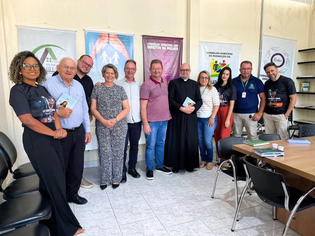 Porém, unir forças é preciso. A reunião que aconteceu na Secretaria Municipal de Assistência Social na manhã de hoje, 10 de março de 2026, contou com a presença do Bispo Diocesano, Dom Canísio Klaus, Pe. Roberto Jeronimo Gottardo, SJ, Pe. Fabio Luiz Pereira, o coordenador do CPC da comunidade Matriz, Santo Antônio, Ricardo Schneider, e da Secretária Municipal de Assistência Social, Sinéia Abreu e assessores.