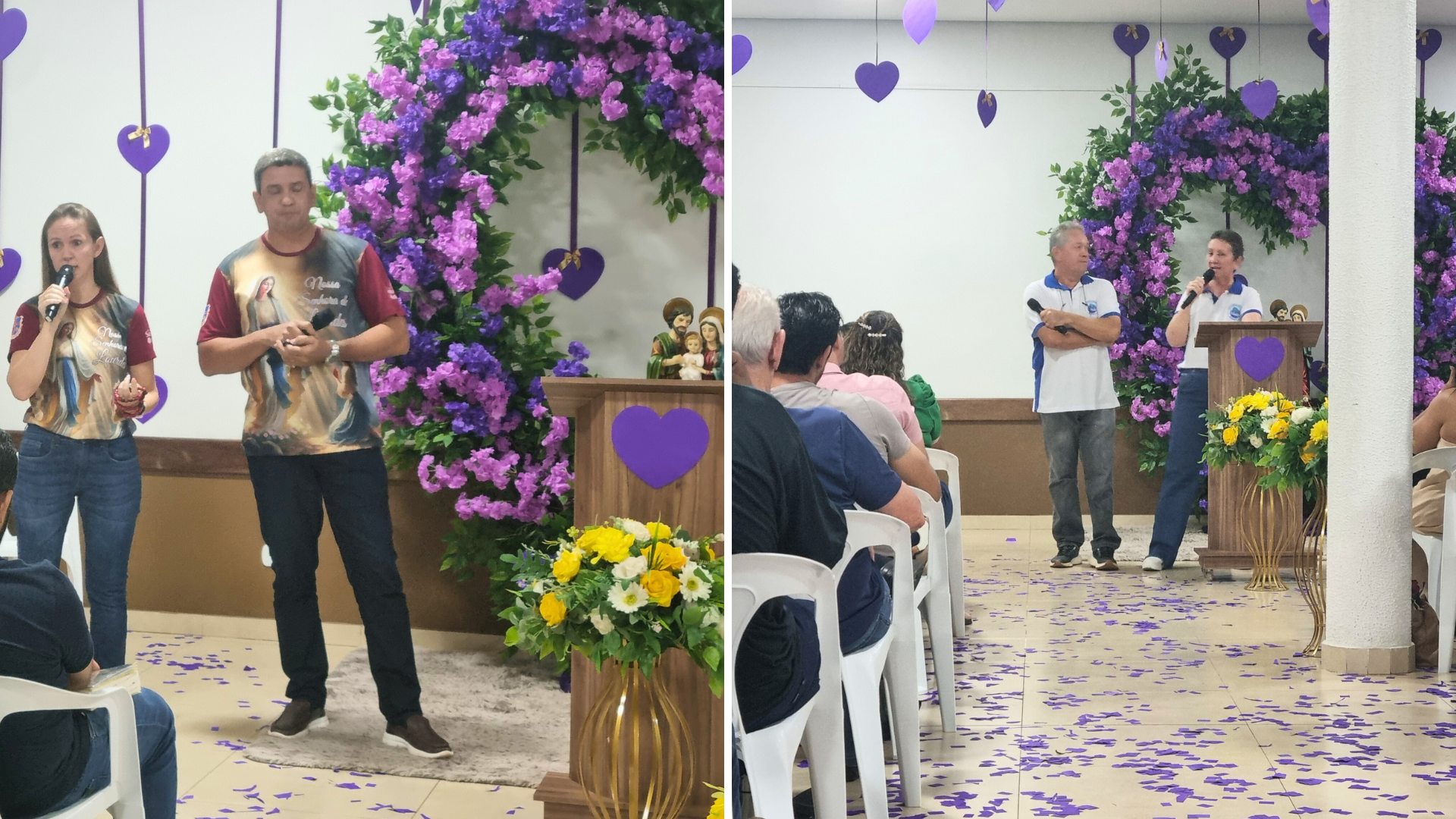 O segundo momento foi conduzido pelo casal Juarez e Andressa, que refletiu sobre o tema “Unidos no Amor do Senhor”, oferecendo testemunhos sobre a importância da oração na vida conjugal e sobre a ação restauradora de Jesus na vida dos casais.