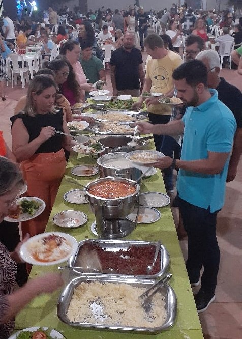 Aumentar Fonte +Diminuir Fonte -No sábado, 13 de maio de 2023, a comunidade Nossa Senhora de Lourdes patrocinou a deliciosa e famosa macarronada, que sempre foi e continua sendo um sucesso. É importante sublinhar que o tradicional evento estava em stand-by por causa da fatídica pandemia. Nota-se que as pessoas estavam na expectativa e aos poucos o fantasma do contágio/morte como o pestilento vírus deixou de amordaçar o imaginário do povo. Por isso, a participação e o número de pessoas que estão comparecendo aos eventos organizados pelas comunidades estão impressionando tanto. Foi o que se viu na última macarronada. Uma beleza!