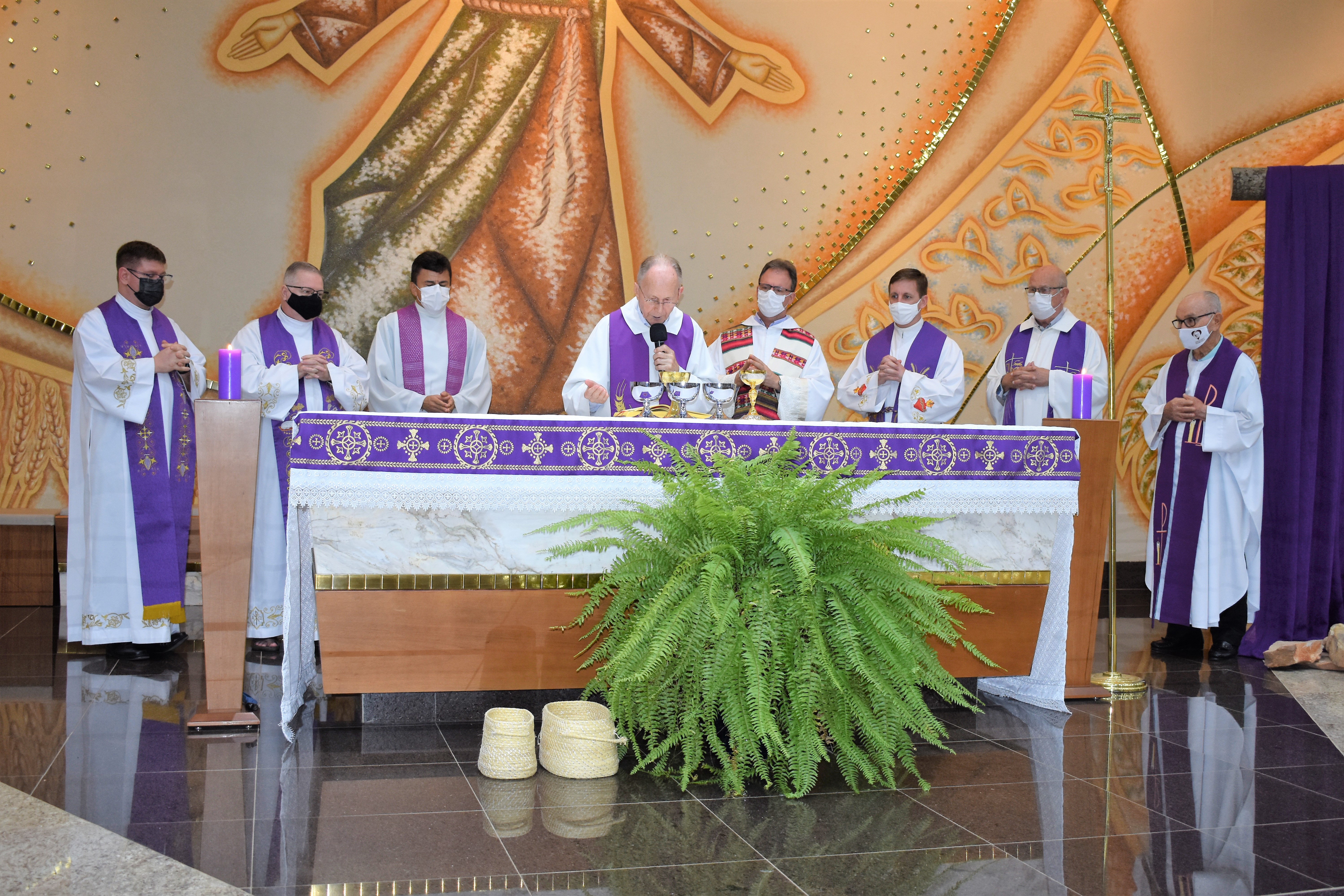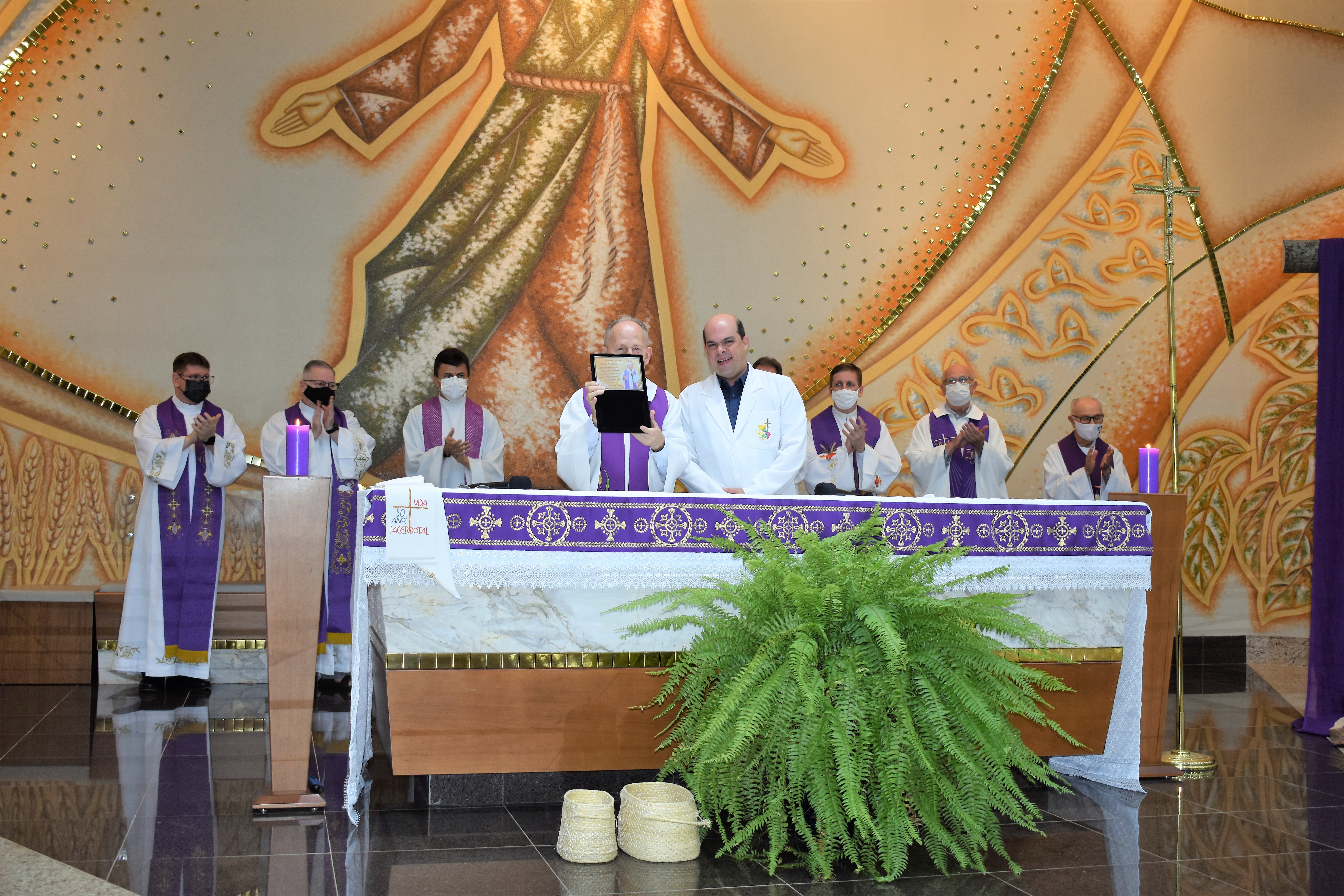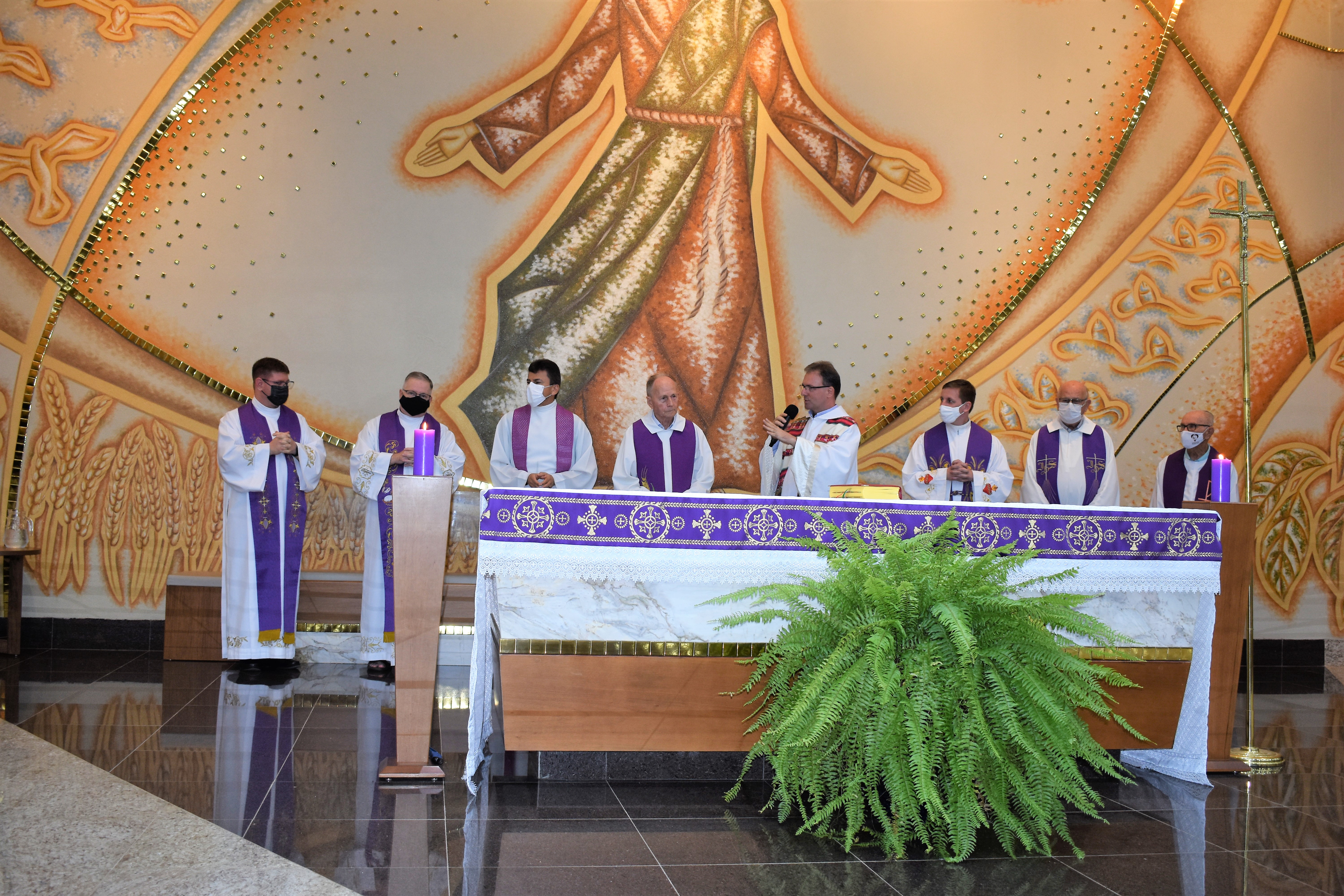 A missa foi presidida pelo Pe. Guido e concelebrada por Pe. Roberto J. Gottardo,SJ, Pe. Marcelo Pereira da Costa,SJ, Pe. Ivo H. Mueller,SJ, Pe. Miguel Mallmann, Pe. Marcos Quaini e Pe. Gilson Tardivo e Pe. Ricardo.