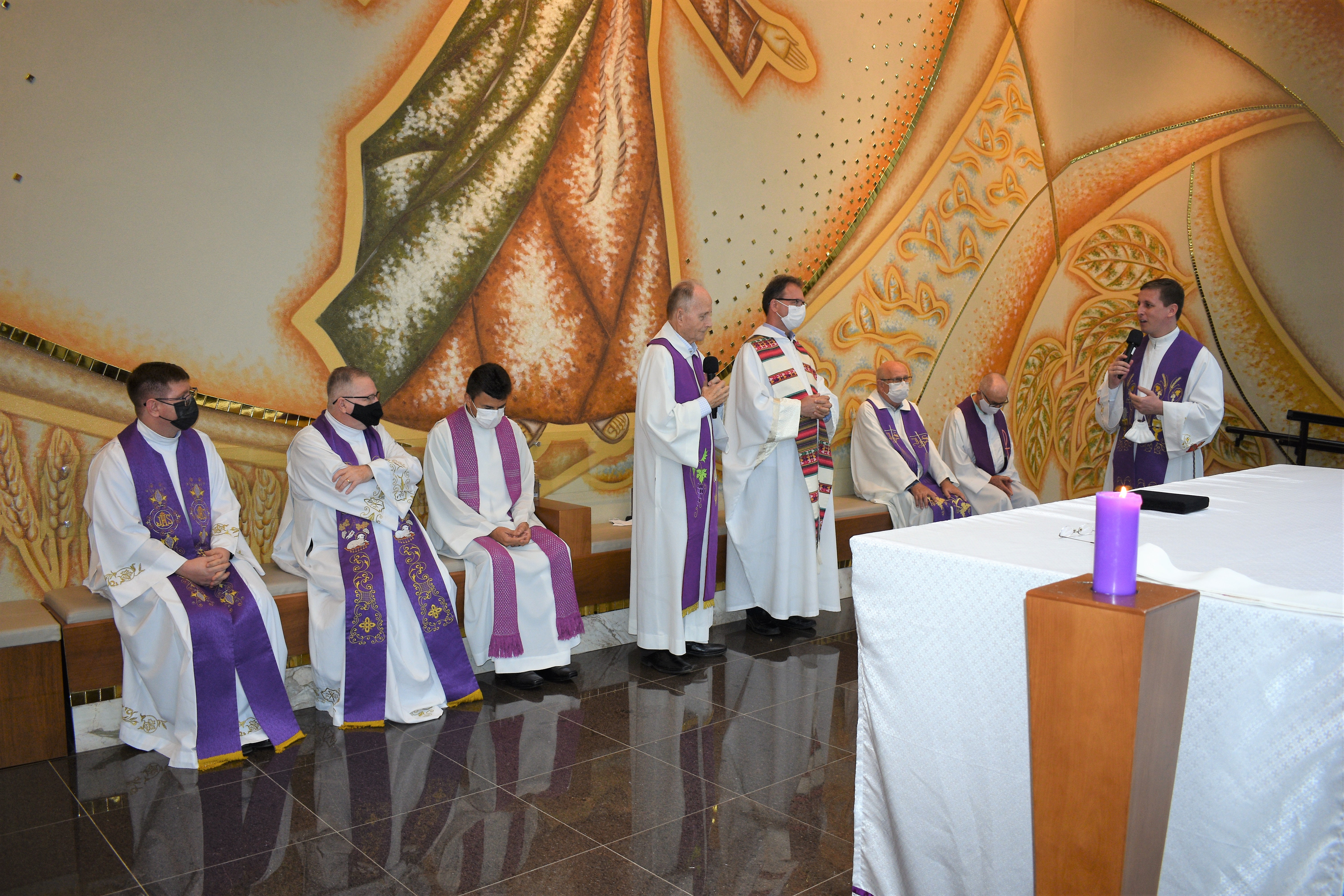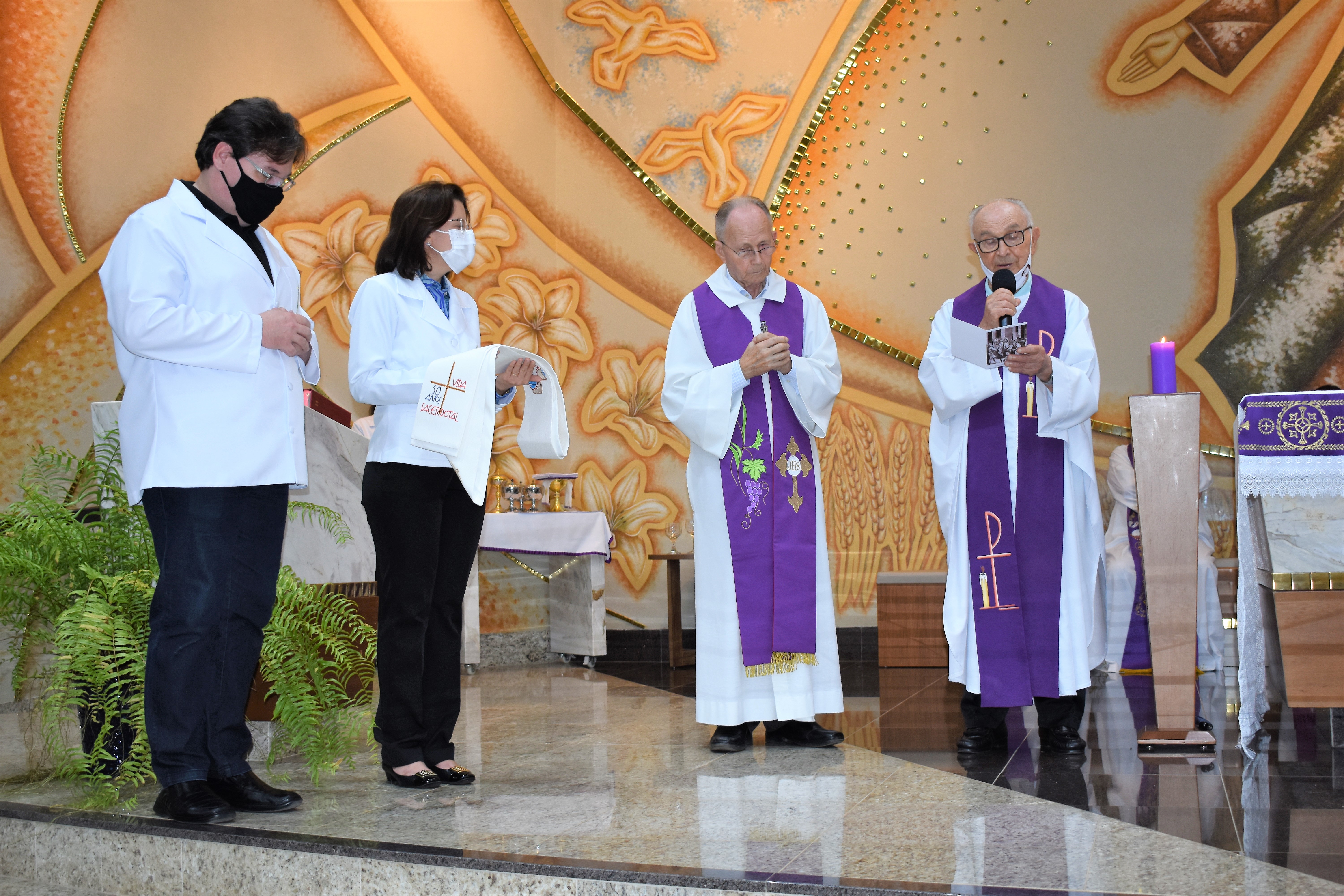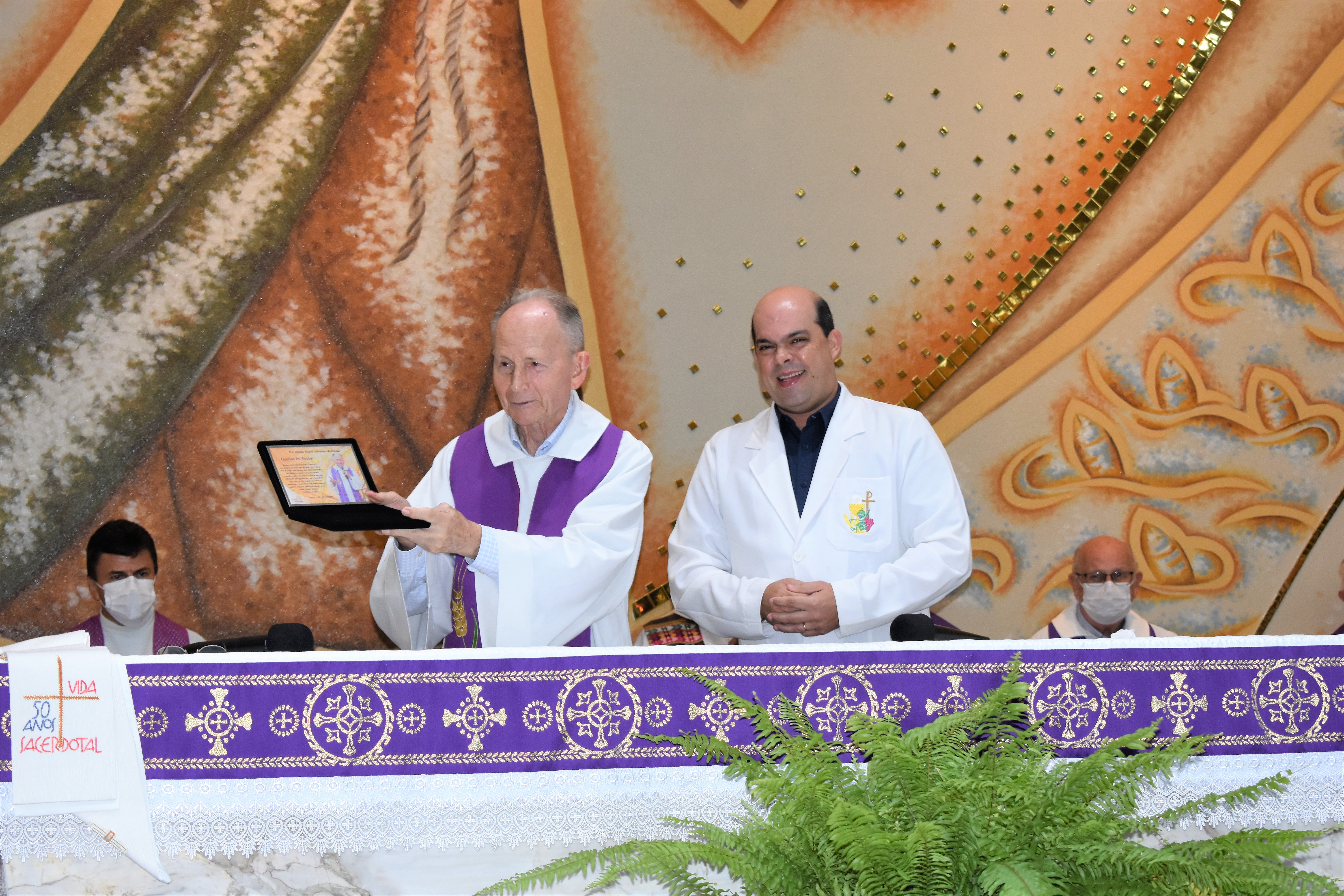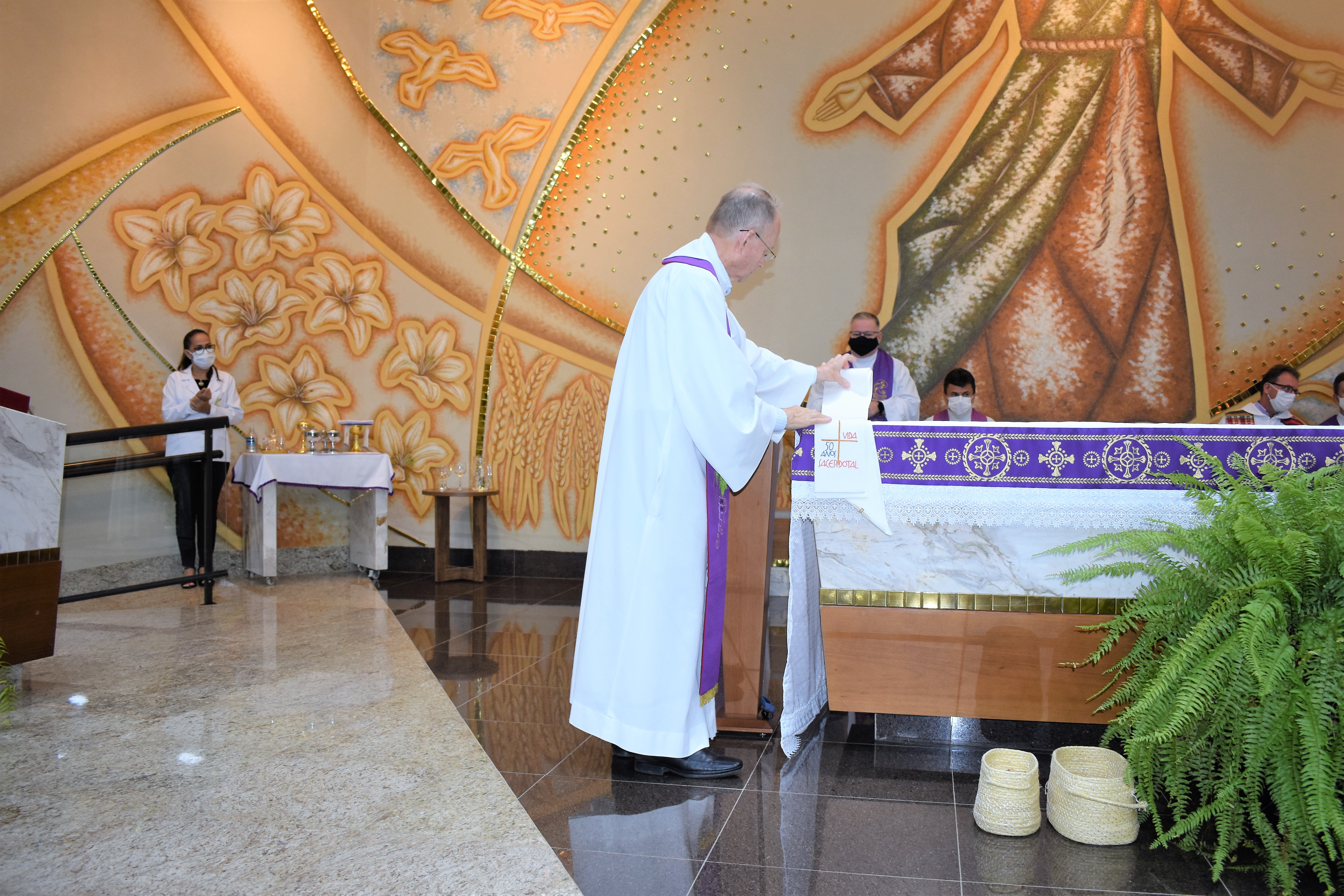 A missa foi presidida pelo Pe. Guido e concelebrada por Pe. Roberto J. Gottardo,SJ, Pe. Marcelo Pereira da Costa,SJ, Pe. Ivo H. Mueller,SJ, Pe. Miguel Mallmann, Pe. Marcos Quaini e Pe. Gilson Tardivo e Pe. Ricardo.
