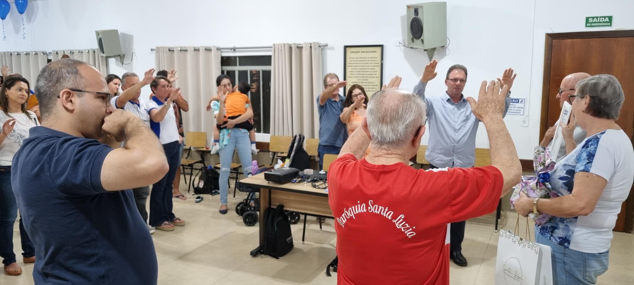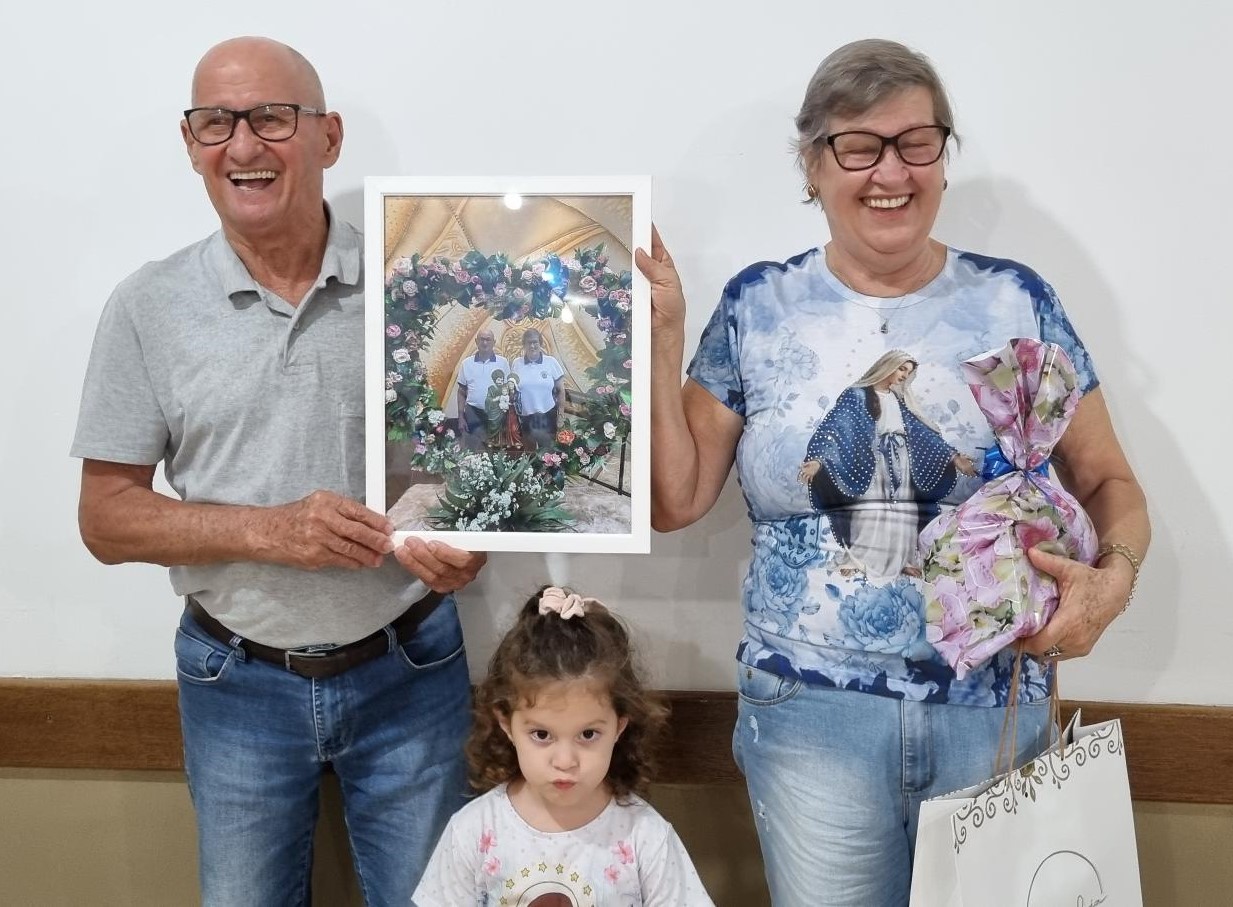 Após a oração e benção final, realizou-se o registro fotográfico com todos e foi prestada justa homenagem ao casal para expressar a gratidão de todos pela convivência e linda caminhada partilhada junto a PF e também porque não dizer pelos vários anos de participação e de doação junto à comunidade da Matriz da Paróquia Santo Antônio. Além da participação dos membros da PF estavam presentes o Pe. Ivo e o Padre Roberto Gottardo.