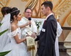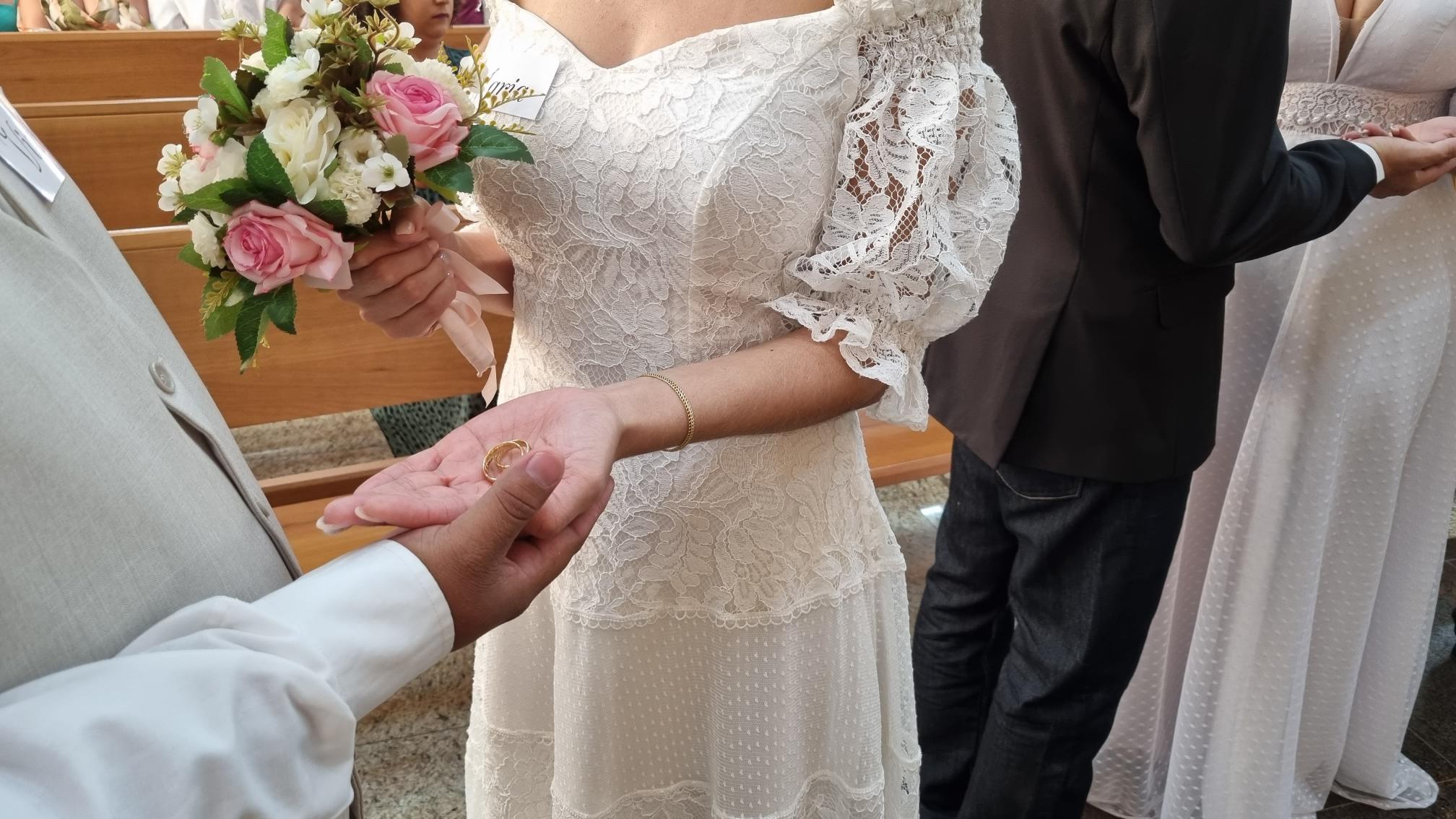 Os noivos Dinarthi Araújo Cardoso Júnior e Gabriela de Abreu Veras, vivem juntos há 15 anos e decidiram sacramentar essa união, na igreja, pois querem dar o exemplo para a filhinha de 5 meses. “Estávamos longe da religião, de uma vida cristã, e com o nascimento da Catherina foi como se algo visceral dentro da gente chamasse e dissesse ‘olha, vocês precisam de algo mais’ e a gente veio por esse algo a mais, porque a gente quer que Catherina cresça dentro de uma vida cristã, não só de fala, mas de exemplo também”, assegurou Dinarthi. “É maravilhoso, desde a preparação, a expectativa do dia, além da parte espiritual da gente, é muito importante, porque fez diferença na nossa vida e vai fazer na dela também (filha)”, descreveu Gabriela.