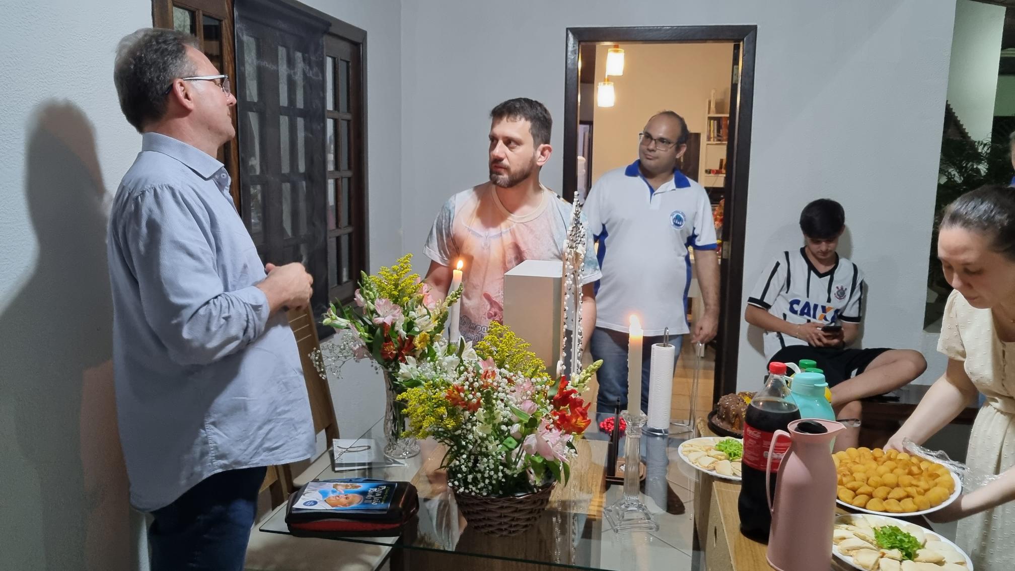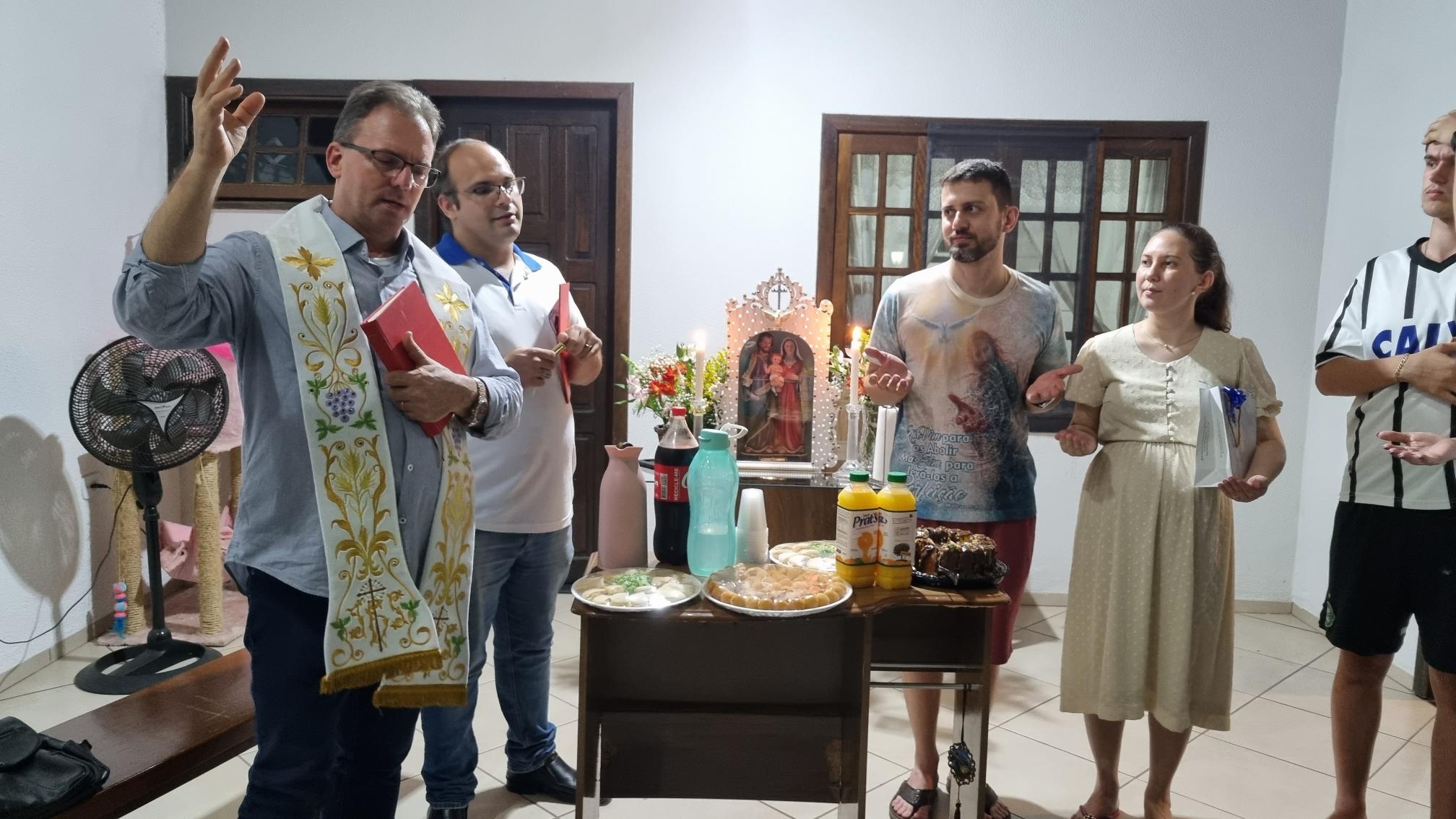 Na última sexta-feira (23) a Pastoral Familiar da Paróquia Santo Antônio de Sinop juntamente com Pe. Roberto J. Gottardo,SJ esteve na residência do jovem e simpático casal, Adriano e Débora ,para a recitação da oração do terço e assim pedir graças e bênçãos a todas as famílias e, principalmente, a família deles com a bênção da casa também.